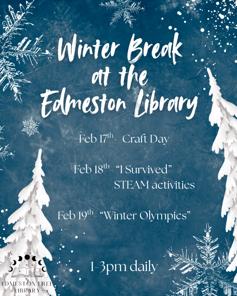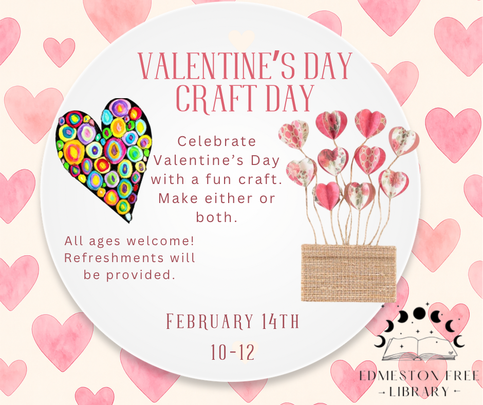 Saturday, February 14th 10am-12pm Edmeston Free Library, 26 East Street