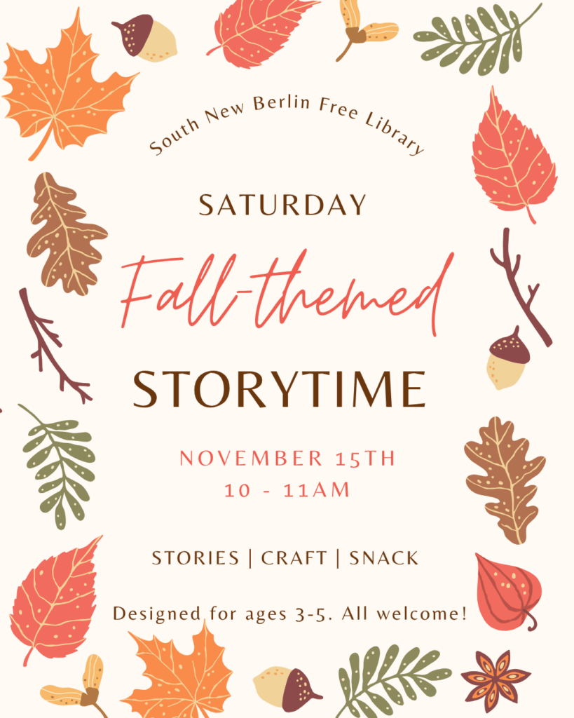 Grab your little bookworms and join us this Saturday, November 15th from 10–11 AM for a fall-themed Storytime and craft at the library! We’ll share some sweet seasonal stories, sing songs, and celebrate all things autumn. Perfect for ages 3–5, but all ages are welcome … Continue reading Storytime 11/15 - Willow Wreath Workshop