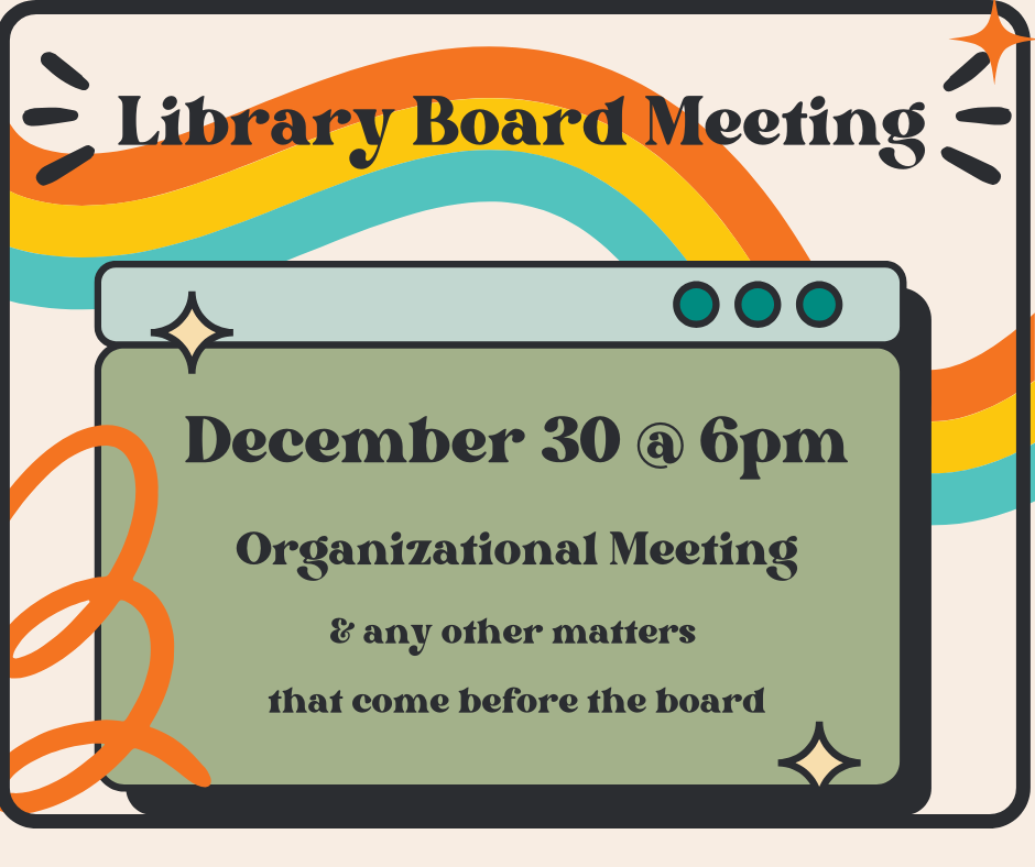 Library Board Meeting 12-30-25 @ 6pm